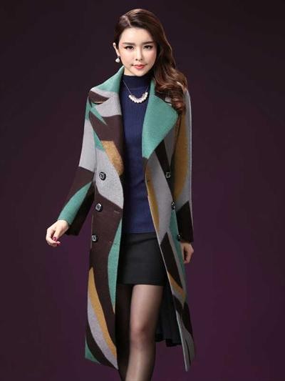 Áo khoác dạ dài họa tiết phối màu độc đáo TA319