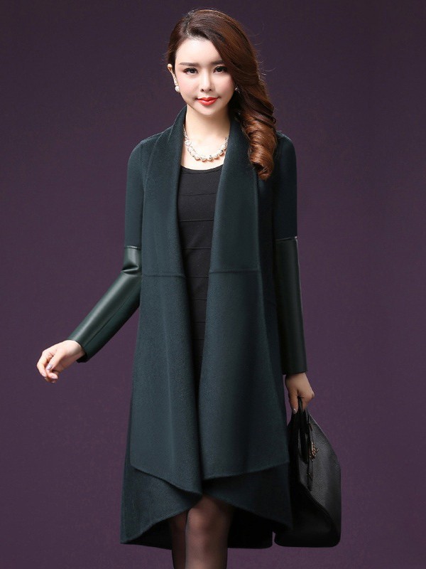 Áo khoác dạ Hàn Quốc đẹp tay phối da thời trang TA321