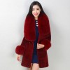 Khoác dạ xanh 3 cúc cổ áo phôi lông chồn đẹp TA318