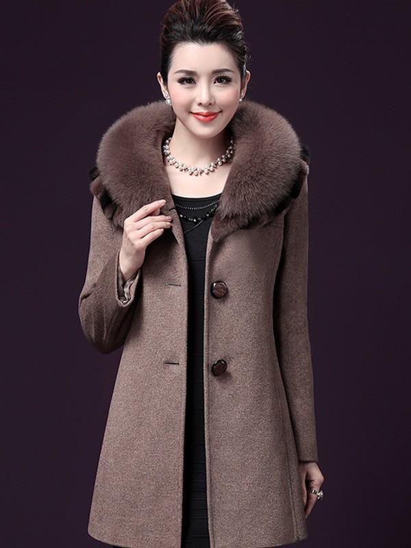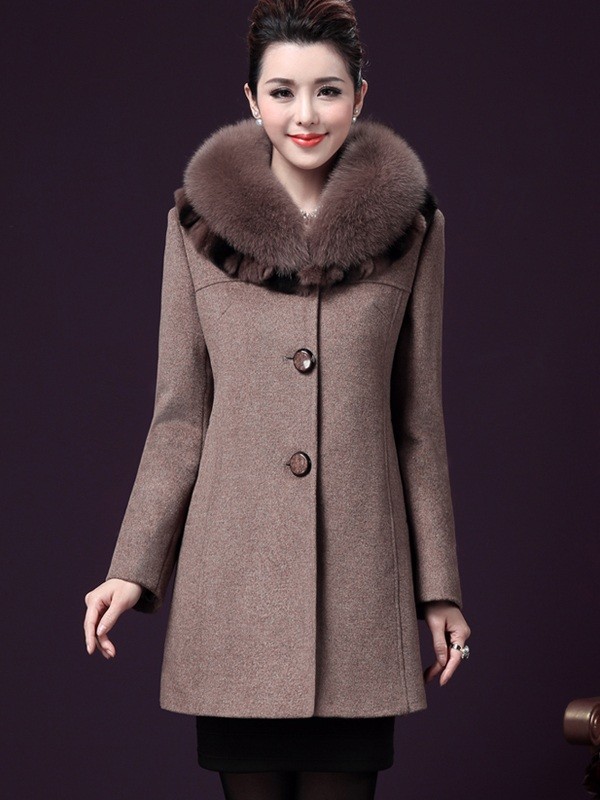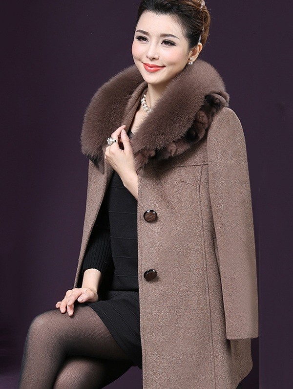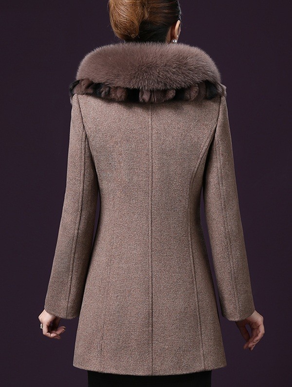 Áo khoác dạ trung niên Hàn Quốc cổ phối lông chồn TA311