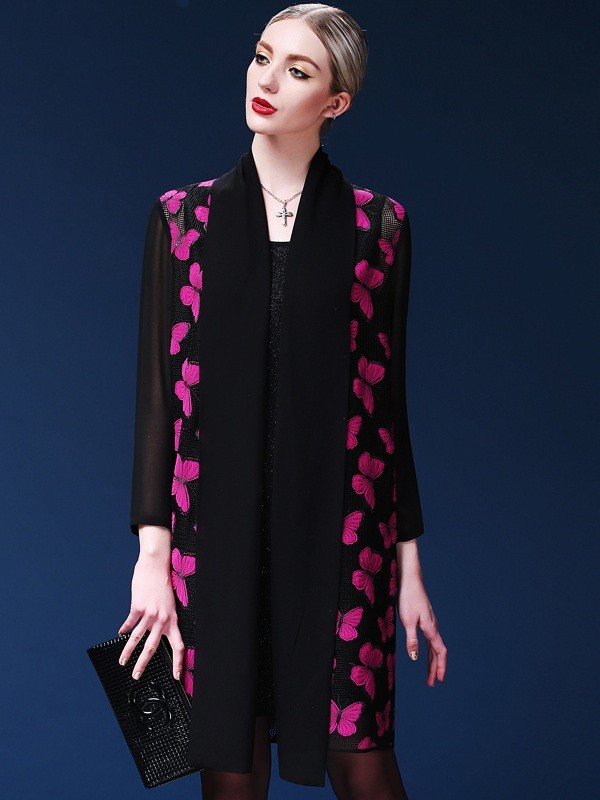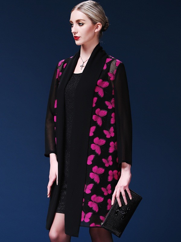 Áo khoác voan mỏng dáng dài họa tiết canh bướm cao cấp TA523 (Màu hồng)